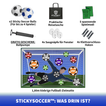 StickyFußball™ besteht aus hochwertigem Stoff, strapazierfähigem Schaumstoff und weiteren robusten Materialien. Solltest du innerhalb von 90 Tagen nach Erhalt ein Qualitätsproblem feststellen, senden wir dir kostenlos Ersatz zu.